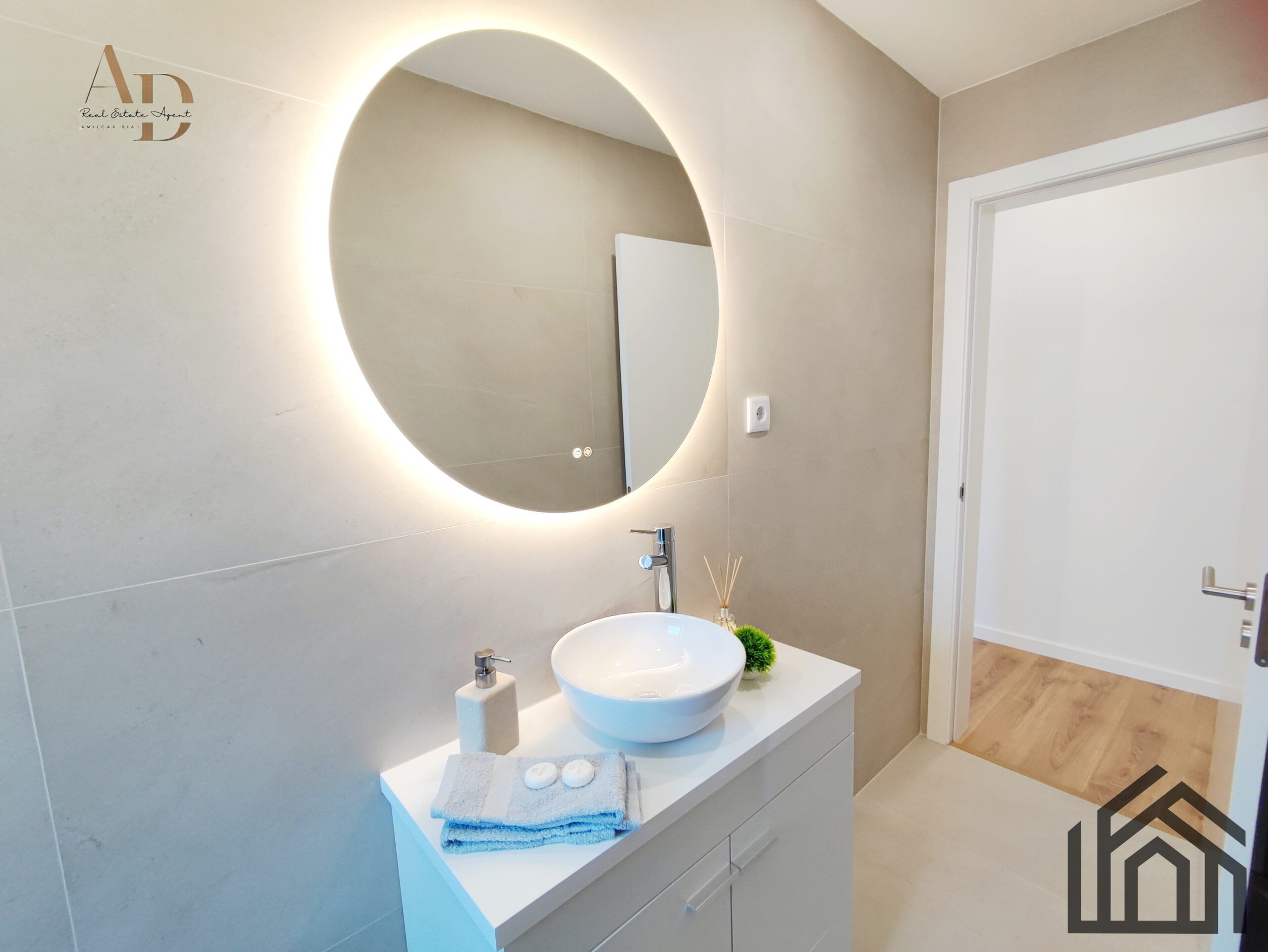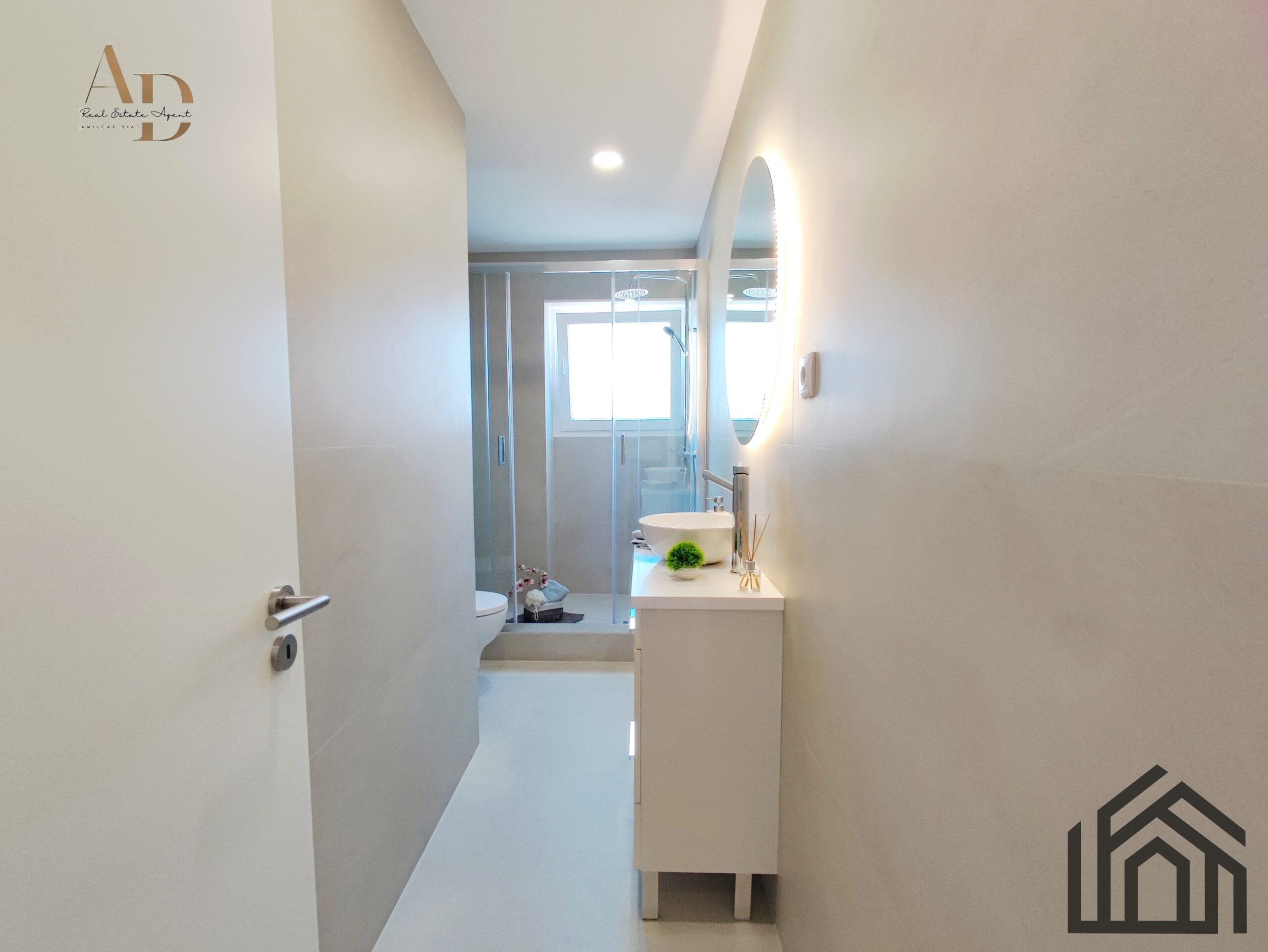 - Totalmente equipada com: forno, placa, exaustor, micro-ondas, máquina de lavar louça e roupa (encastradas), termoacumulador e combinado encastrado