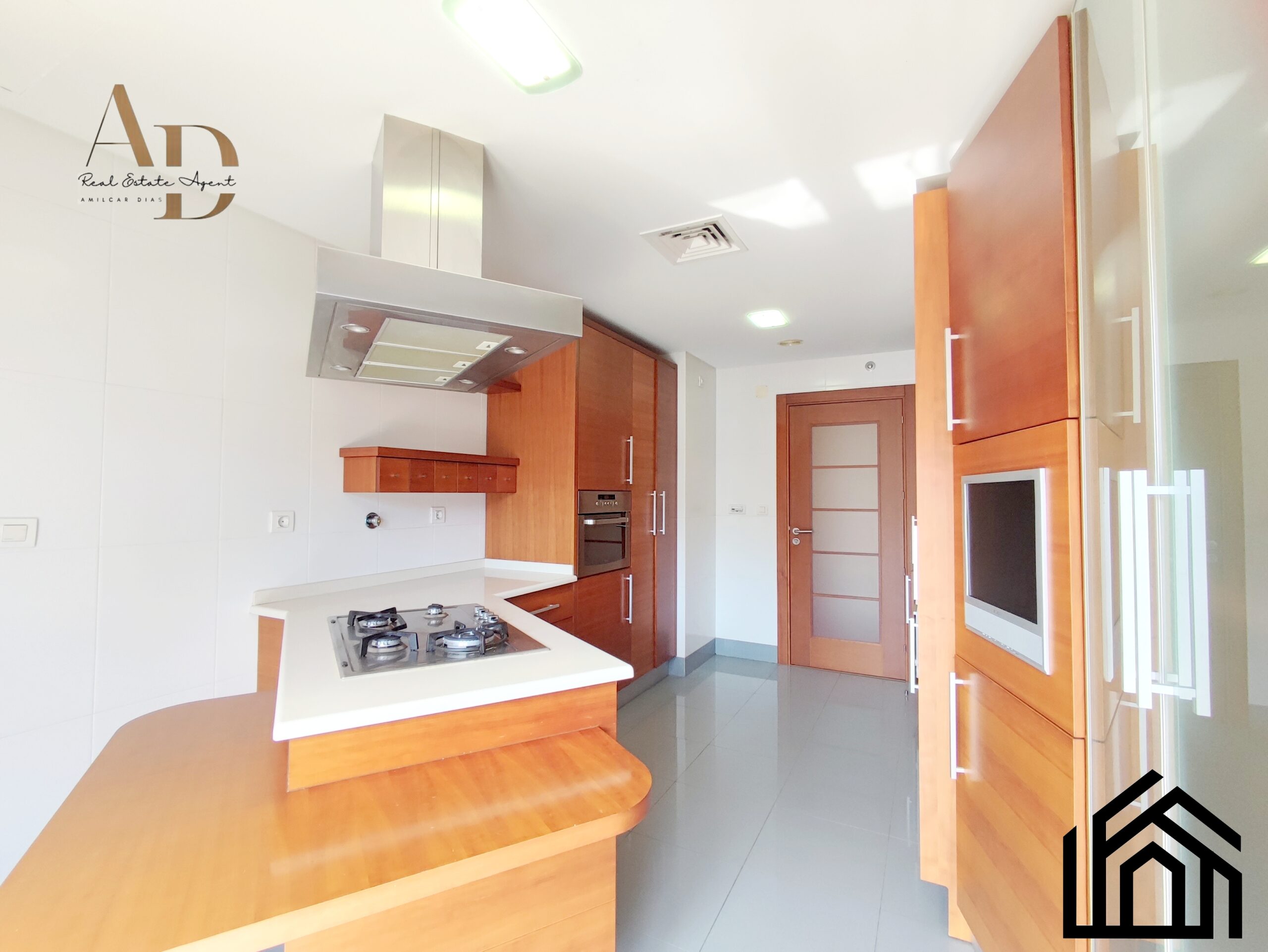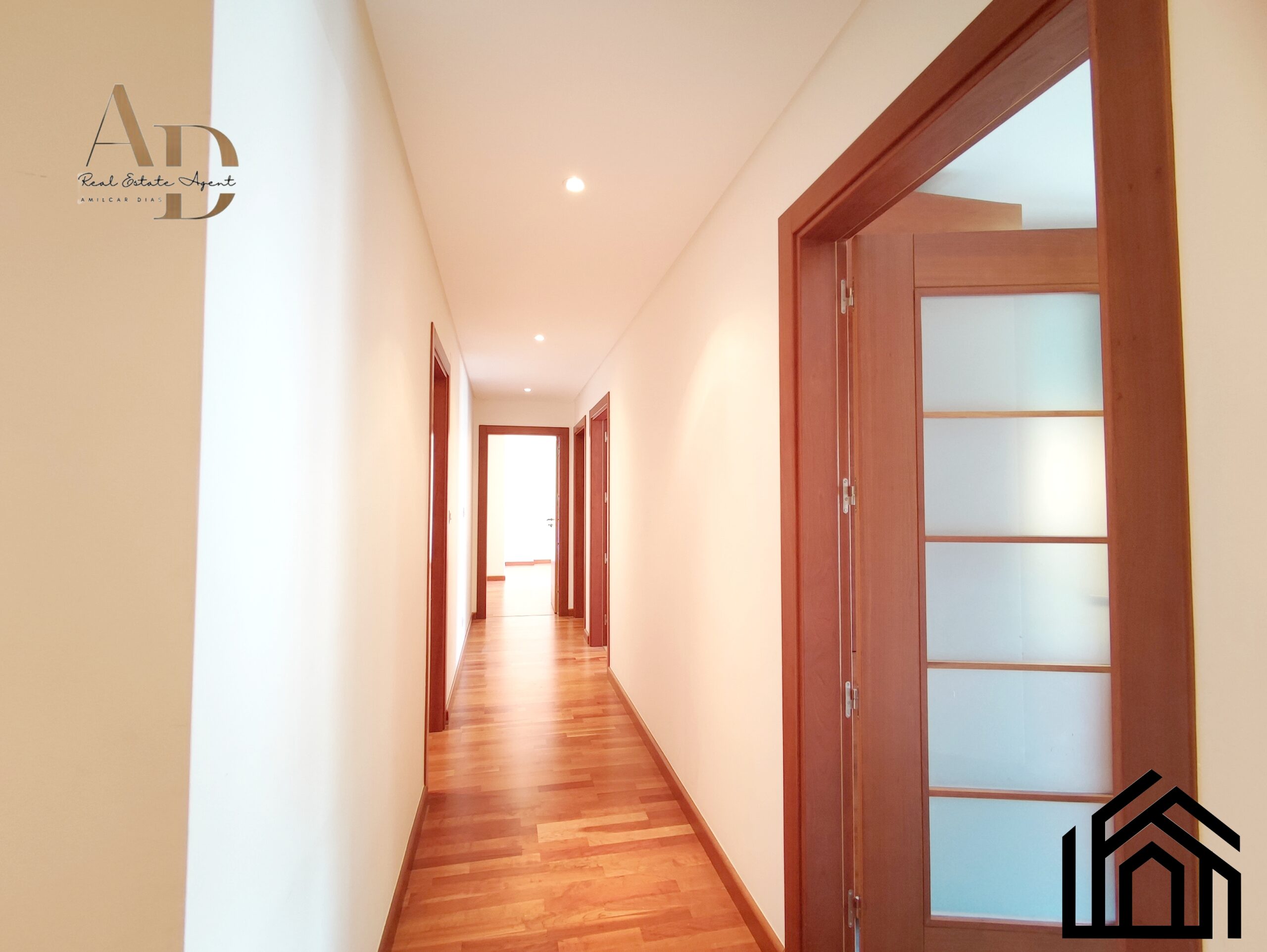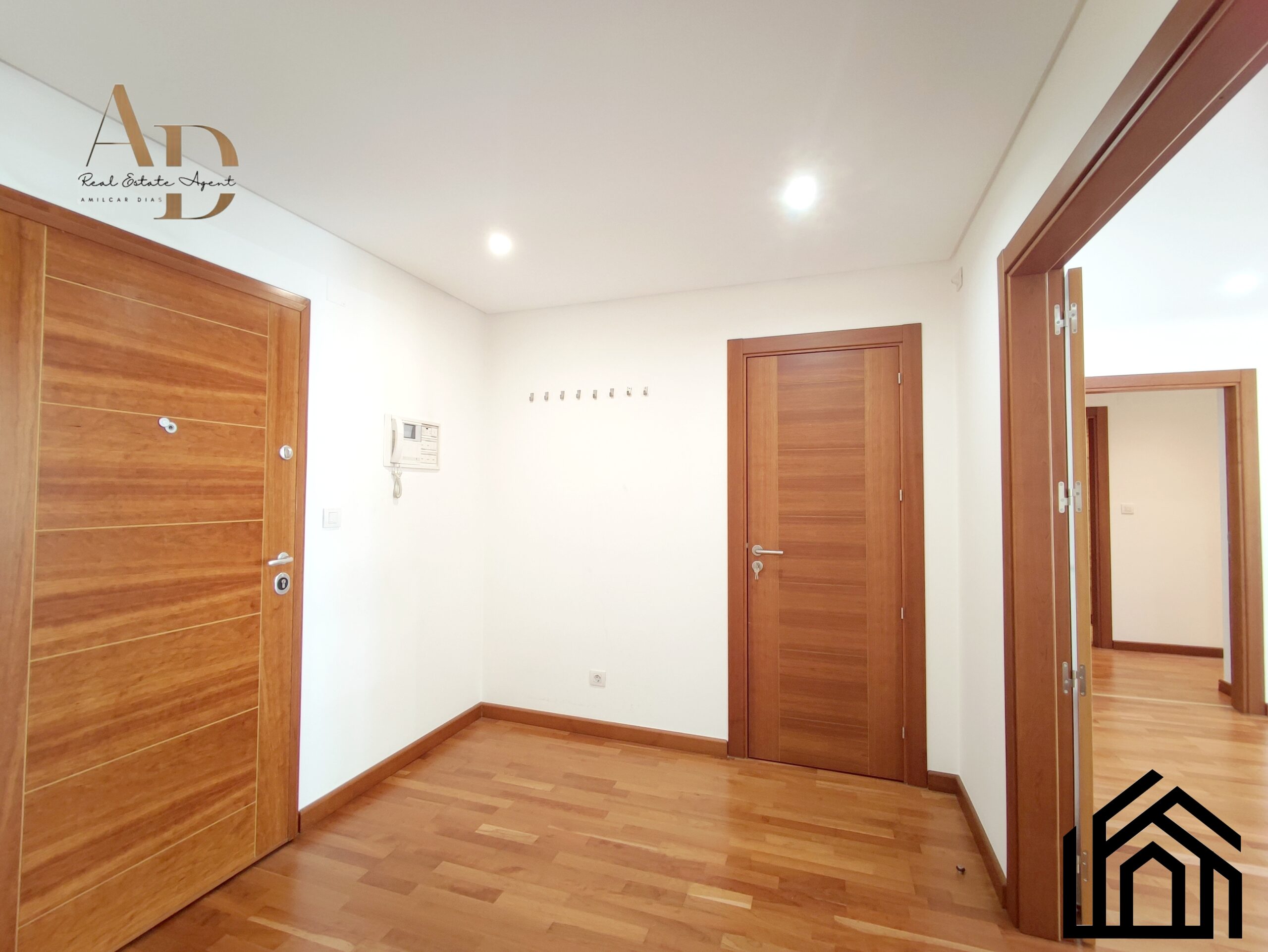•Acabamentos: Pintura a cor branca, estores elétricos, ar condicionado, caixilharia castanha com vidros duplos e oscilo-batente, vídeo porteiro e porta blindada.
