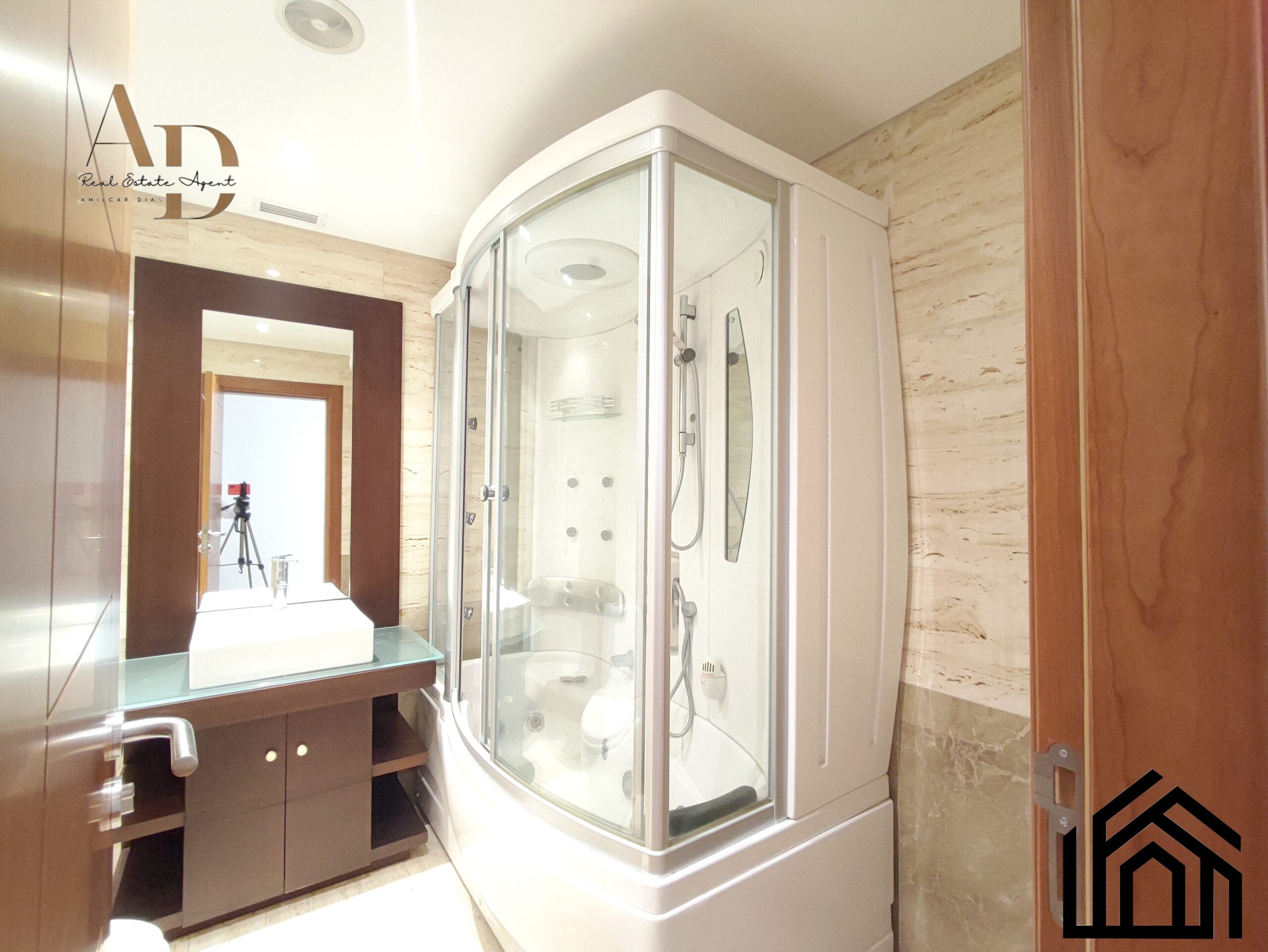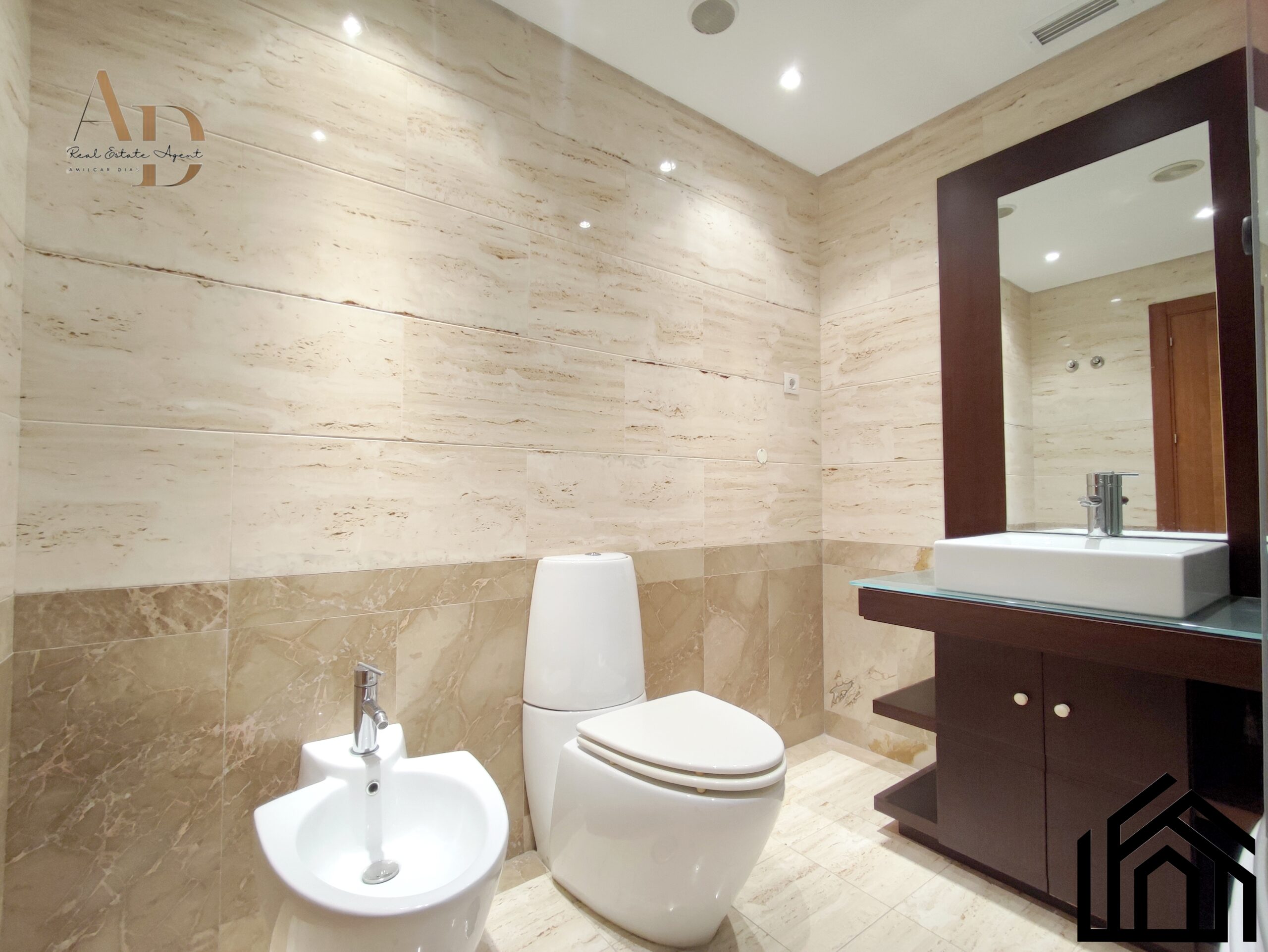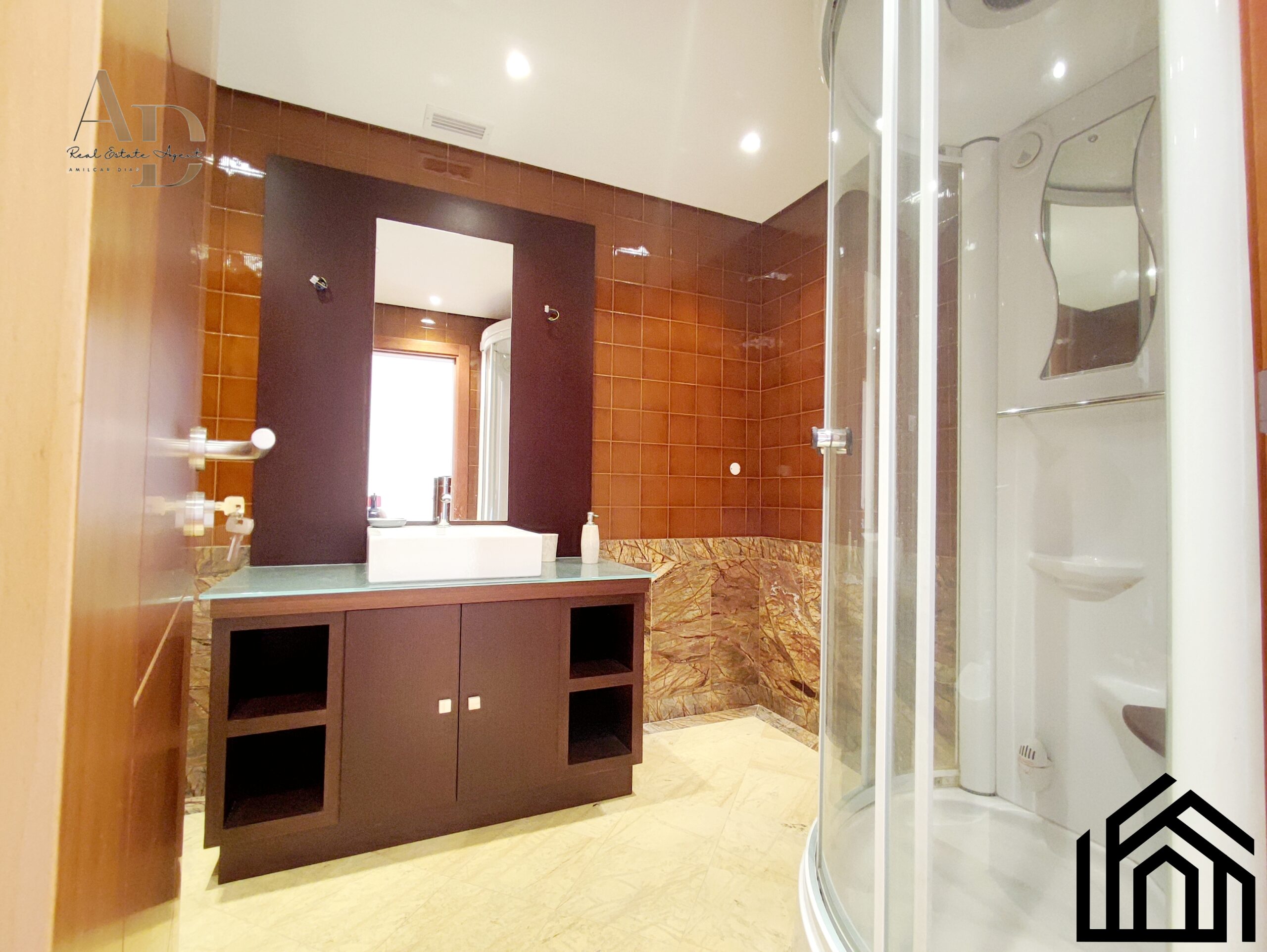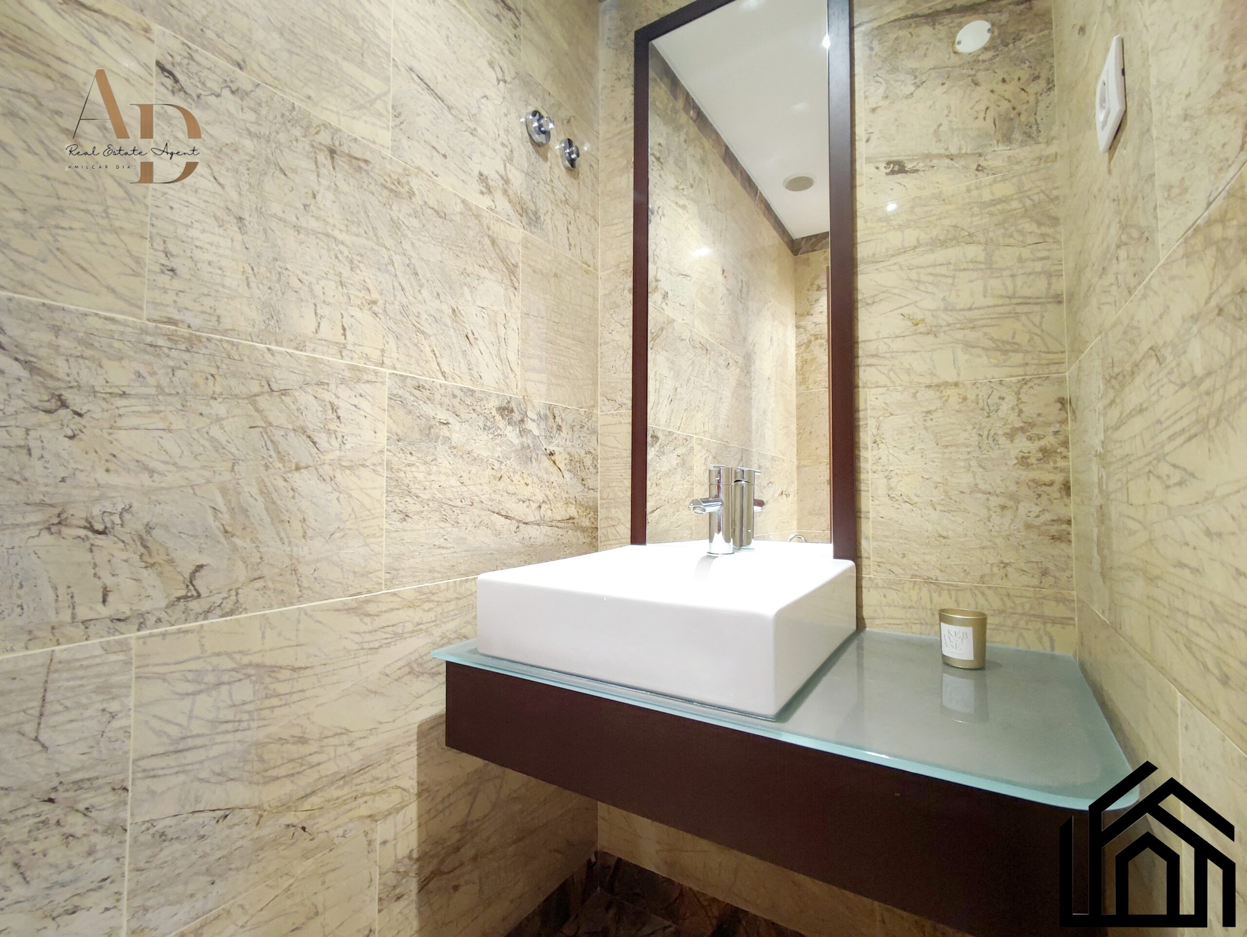 •Acabamentos: Pintura a cor branca, estores elétricos, ar condicionado, caixilharia castanha com vidros duplos e oscilo-batente, vídeo porteiro e porta blindada.