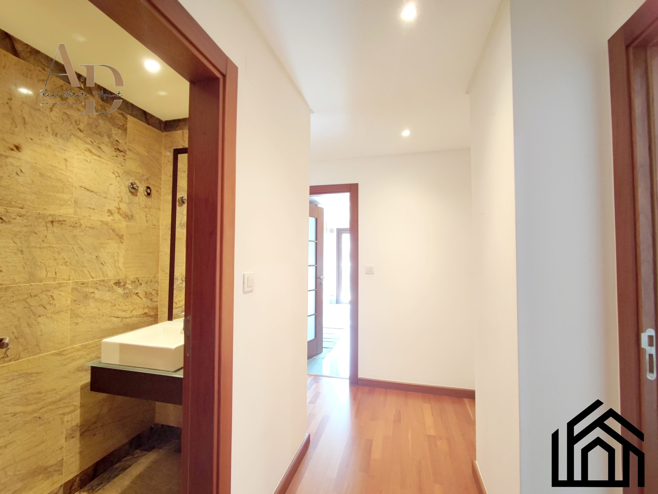 •Pavimento: Flutuante de cor castanho-claro no hall dos quartos e nos quartos. A sala, cozinha e casas de banho têm pavimento cerâmico.